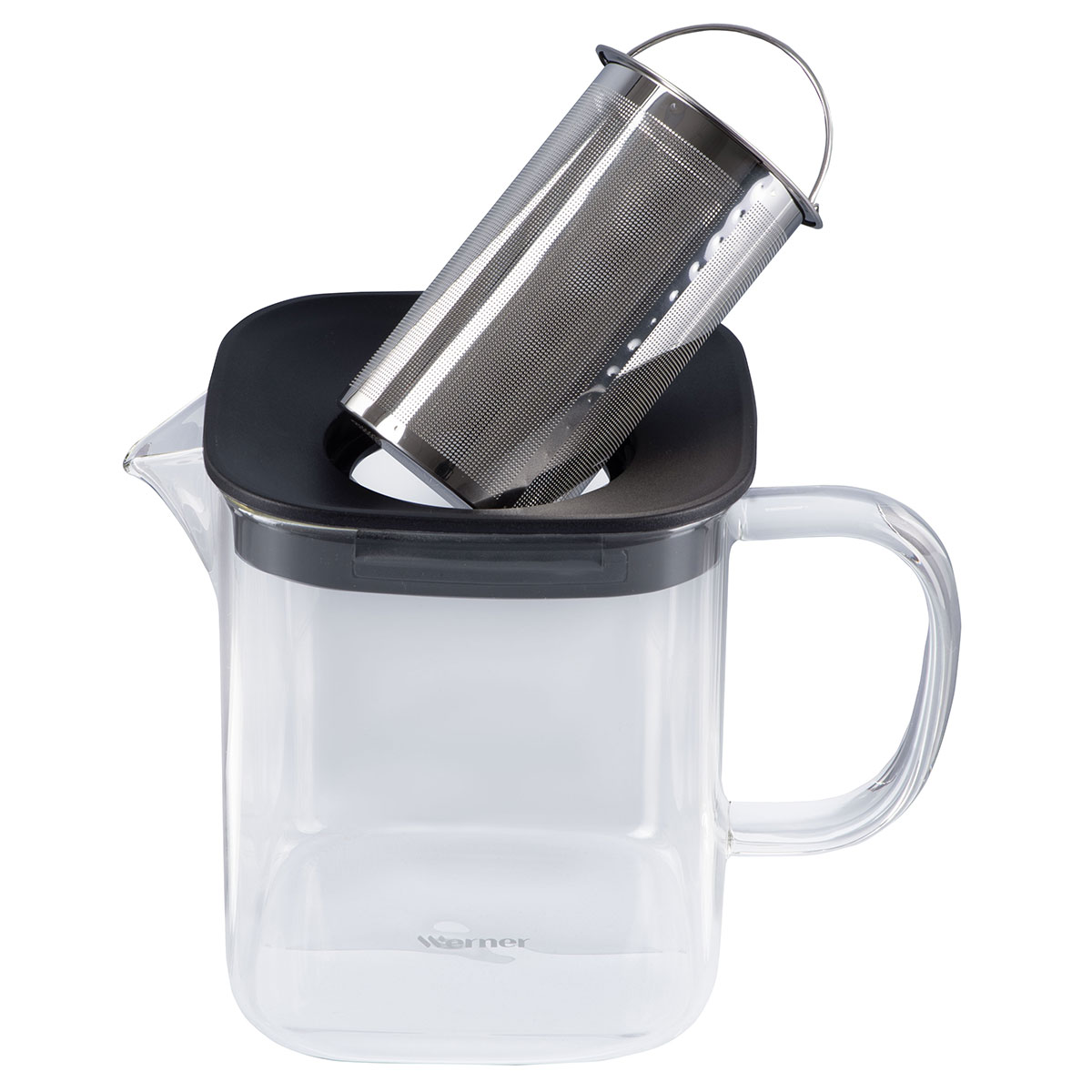Die Teekanne WERNER Nero wurde für diejenigen entwickelt, die nicht nur Funktionalität, sondern auch einen außergewöhnlichen Stil suchen. Das Hauptmerkmal dieses Modells ist die quadratische Form mit sanft abgerundeten Ecken, die dem Behälter ein modernes und elegantes Aussehen verleiht.