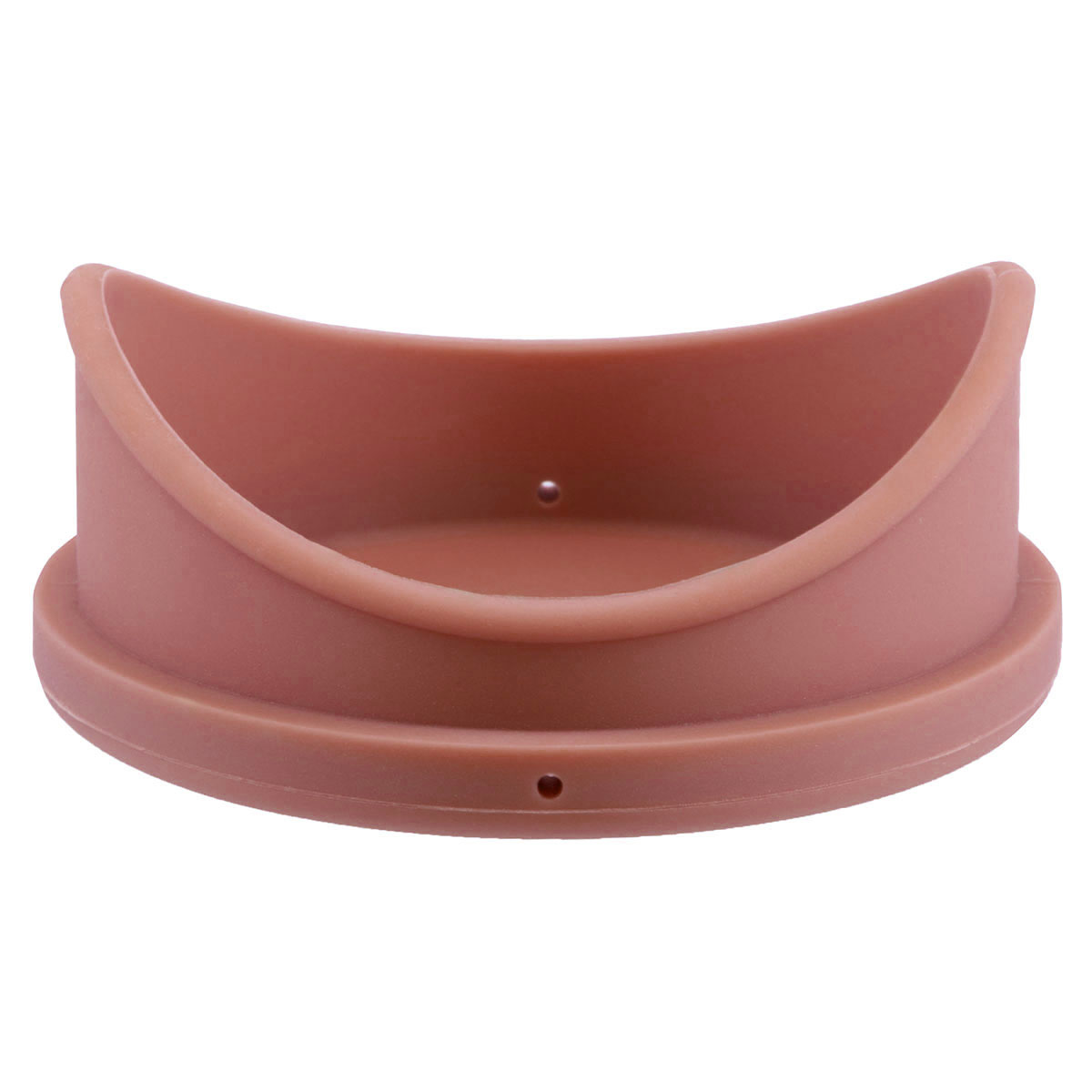Silikondeckel: Der dunkelrosa Deckel hält zuverlässig, lässt sich leicht abnehmen und aufsetzen und verleiht dem Gefäß Verspieltheit.