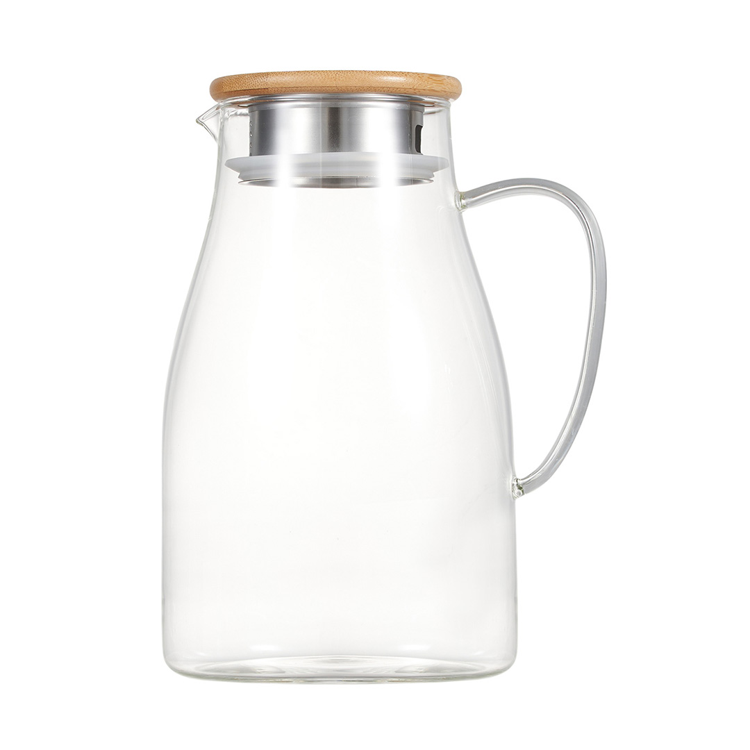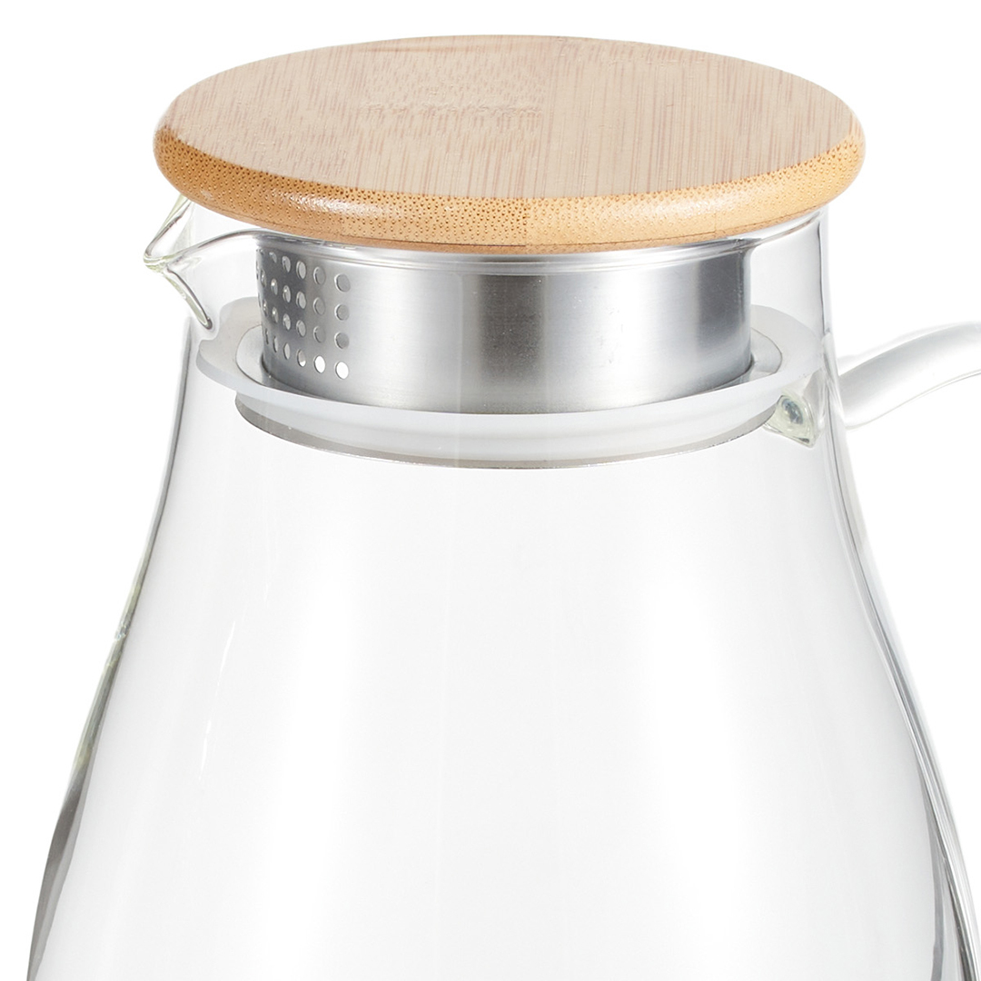 Die Kanne ist aus Borosilikatglas gefertigt, das gegen hohe Temperaturen beständig ist. Der Vorteil von Borosilikatglas ist, dass es widerstandsfähiger gegen verschiedene Kratzer und Beschädigungen ist als normales Glas. Die Kanne hat einen Bambusdeckel mit einer Dichtung, die für eine bessere Abdichtung sorgt. Die Kanne hat einen Edelstahlfilter, der Beeren, Samen, Fruchtstücke und Minzblätter zurückhält. Geeignet für sowohl heiße als auch kalte Getränke. Perfekt geeignet für warme Tees an kühleren Abenden und erfrischende Limonaden an heißen Tagen.
