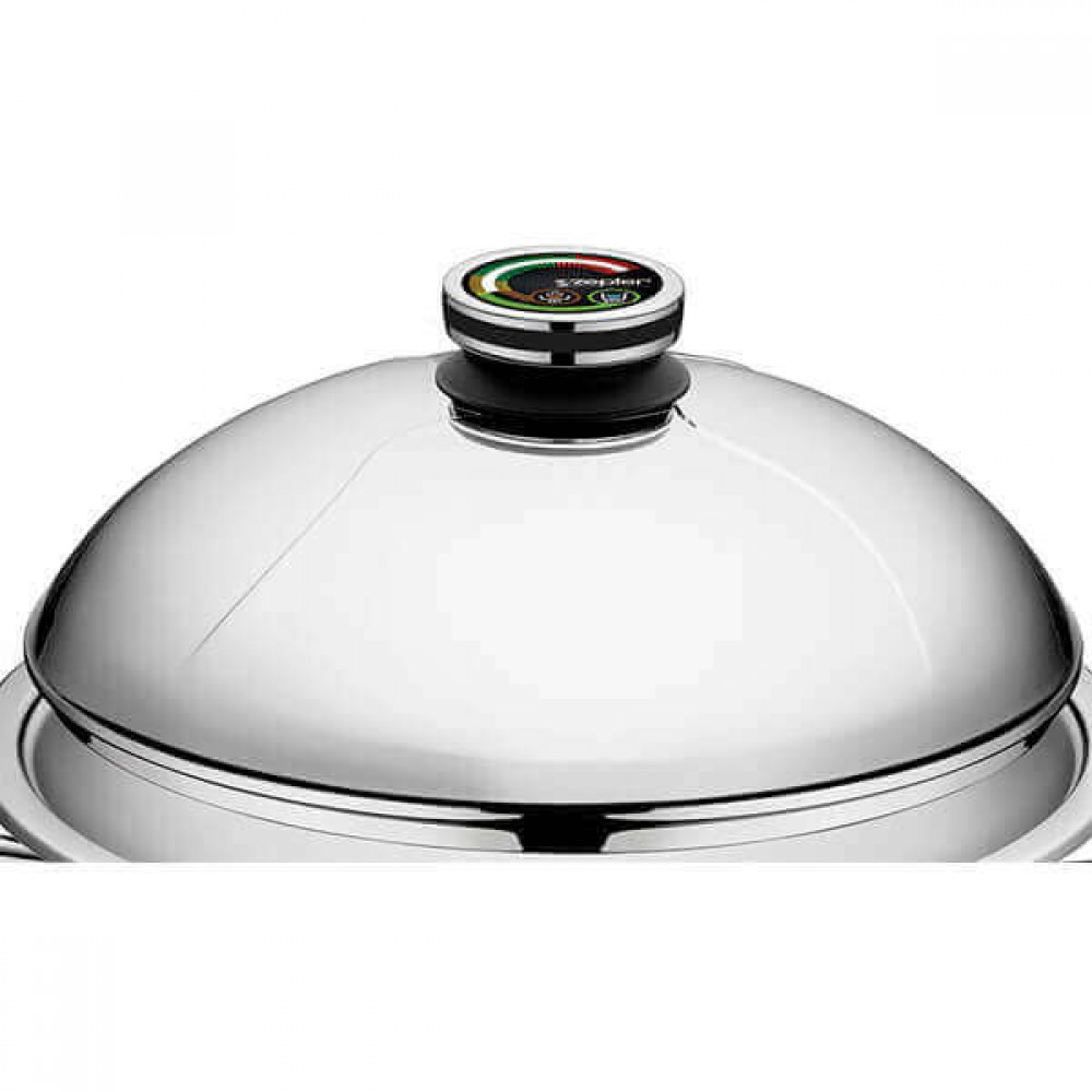 - Die neue Form des Deckels ermöglicht eine gleichmäßige Verteilung des Kondenswassers und ein gleichmäßigeres Garen der Speisen im Inneren des Kochgeschirrs von Zepter.