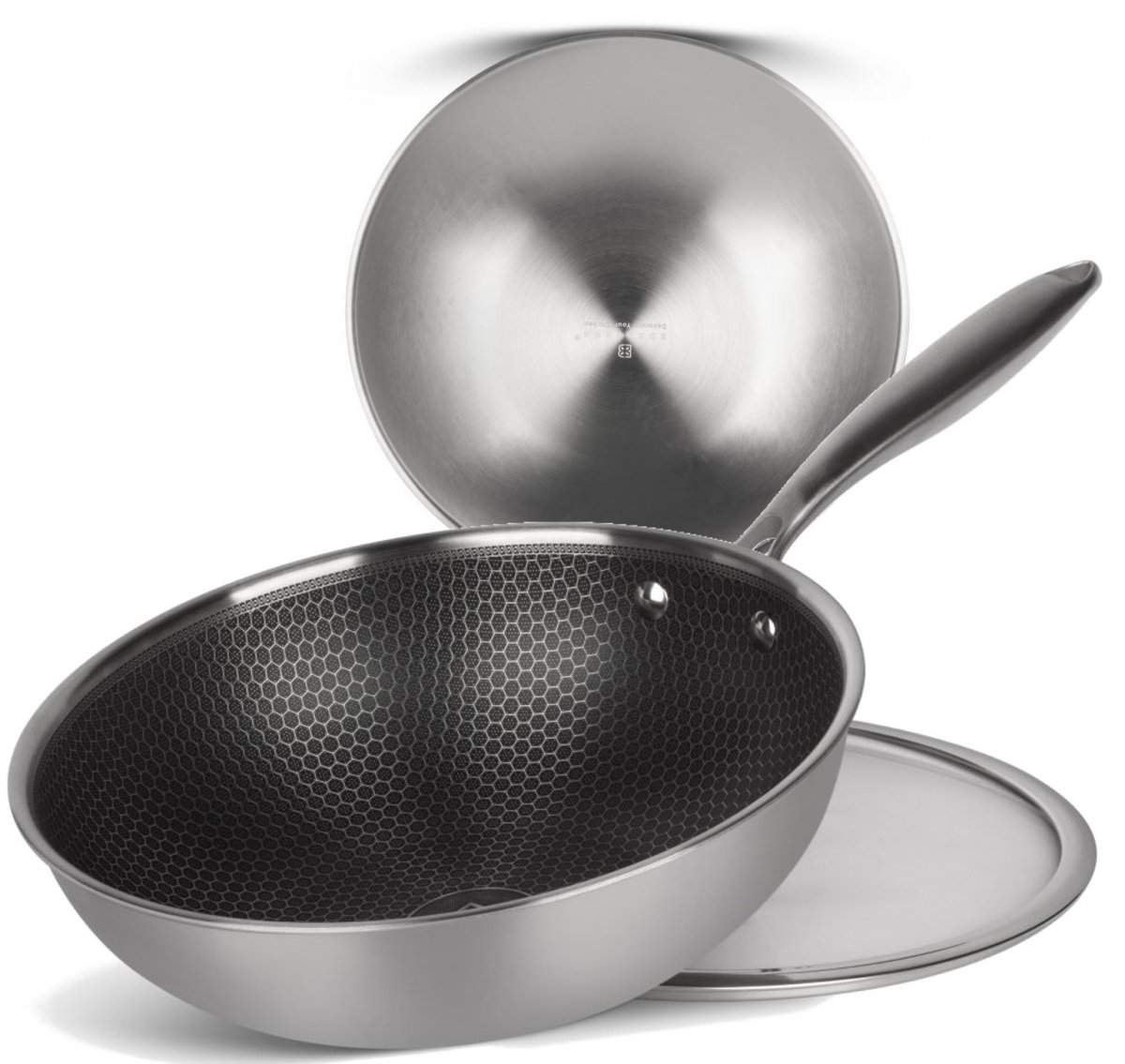 - Die Innenschicht besteht aus strukturiertem Edelstahl mit Antihaftbeschichtung und erhöhter Verschleißfestigkeit