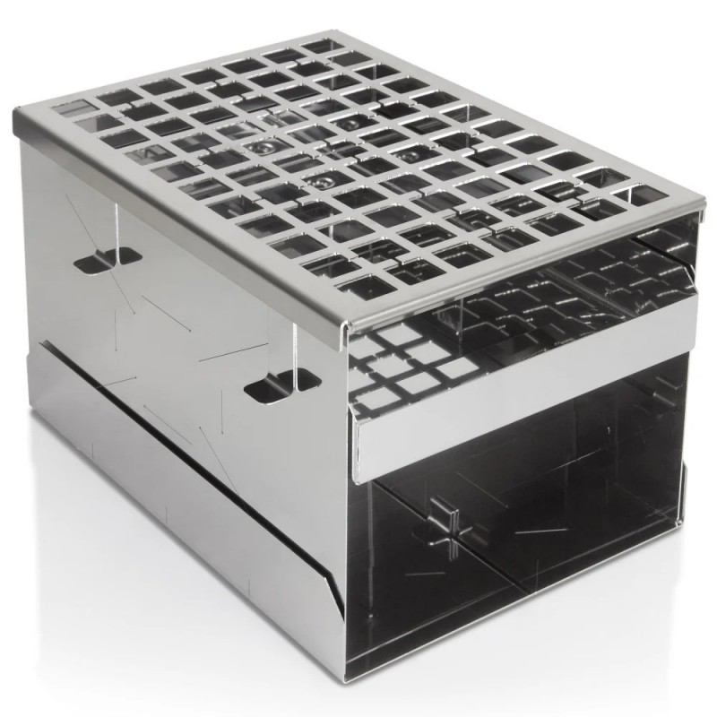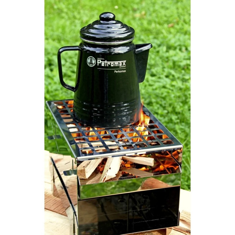 - Die Edelstahlplatte hat präzise Einschnitte – der zerlegbare Kohlegrill PETROMAX fb2 verformt sich auch bei hohen Temperaturen nicht.