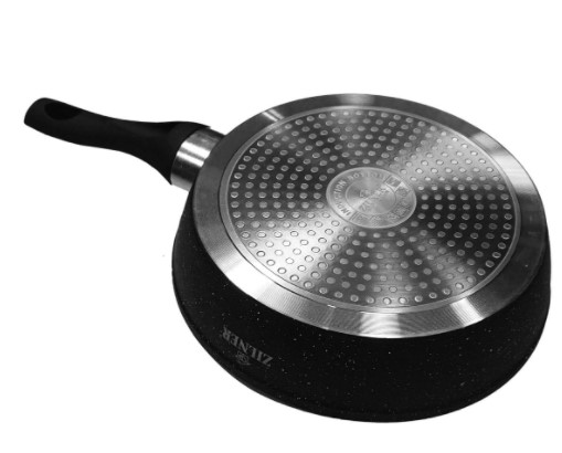 Wir präsentieren die hochwertige ZILNER Bratpfanne – ein vielseitiges Kochgeschirr, das die besten Eigenschaften von Gusseisen und Teflon vereint. Sie ist aus massivem Aluminiumguss gefertigt, erhitzt sich schnell und gleichmäßig, und ihre vertiefte Form und die hohen Seiten ermöglichen es, sie nicht nur zum Braten, sondern auch zum Schmoren wie einen echten Topf zu verwenden.