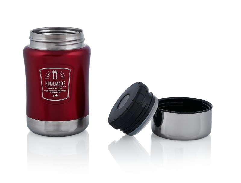 Die Zyle „HomeMade“ Thermosflaschen zeichnen sich durch doppelwandige Wände mit Vakuum dazwischen anstelle von Luft aus. Diese Vakuumisolierung ist deutlich effektiver und garantiert noch bessere thermoregulatorische Eigenschaften der Thermosflasche. Es hält Lebensmittel bis zu 14 Stunden heiß und bis zu 12 Stunden kalt.