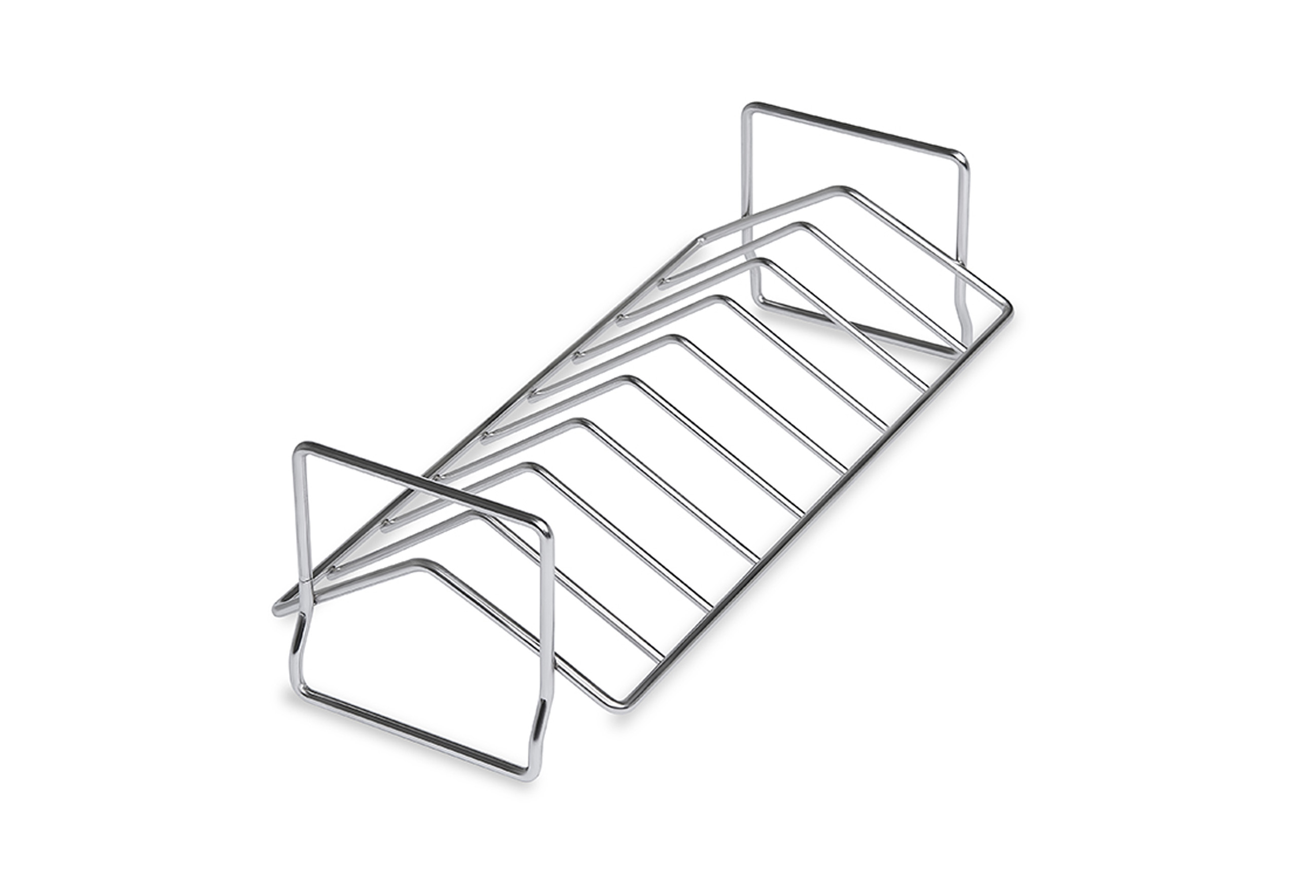 Maximale Grillausnutzung: Der Ständer ermöglicht es, die Rippchen vertikal aufzustellen und so Platz auf dem Grill für andere Gerichte zu sparen.